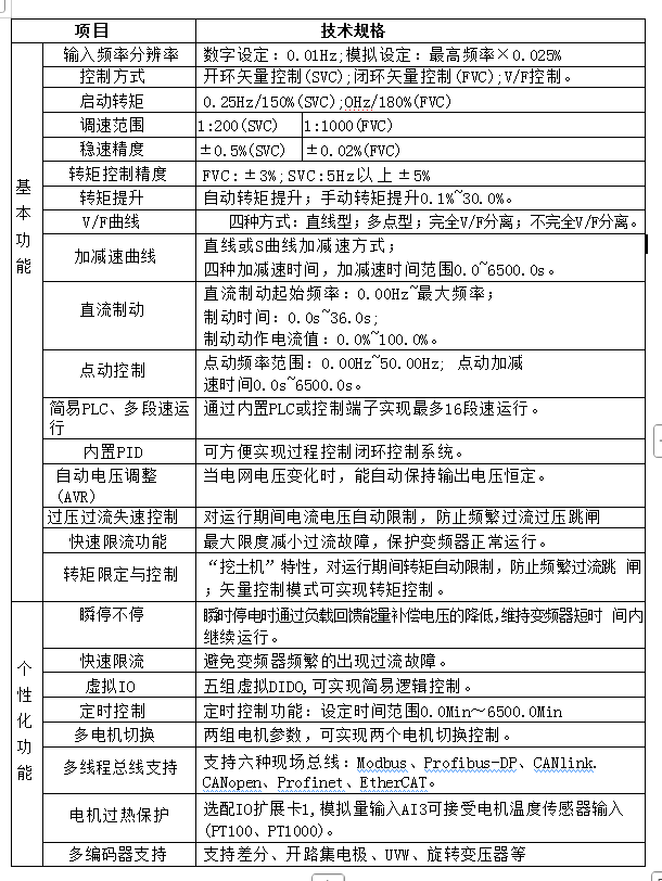 本系列變頻器是一款通用高性能電流矢量變頻器主要用于控制和調(diào)節(jié) 三相交流異步電機(jī)的速度和轉(zhuǎn)矩。采用高性能的矢量控制技術(shù)低速高轉(zhuǎn)矩 輸出,具有良好的動態(tài)特性、超強(qiáng)的過載能力,性能穩(wěn)定,保護(hù)功能強(qiáng)大, 人機(jī)界面簡潔、操作簡易。其廣泛應(yīng)用于工業(yè)領(lǐng)域、制造業(yè)、軌道交通、能源與動力行業(yè)、造紙、拉絲、機(jī)床、包裝、食品、 風(fēng)機(jī)、水泵及各種自動化生產(chǎn)設(shè)備的驅(qū)動。